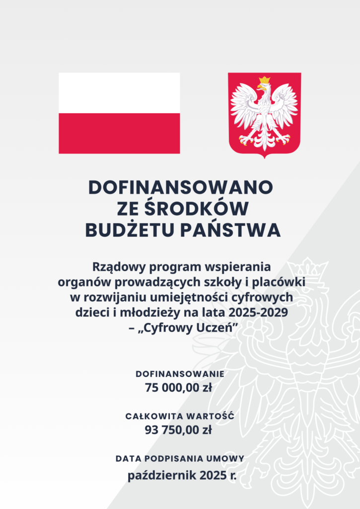 | Skasowano: <p>Rządowy program wspierania organów prowadzących szkoły i placówki w rozwijaniu umiejętności cyfrowych dzieci i młodzieży na lata 2025-2029 – „Cyfrowy Uczeń”</p> | |