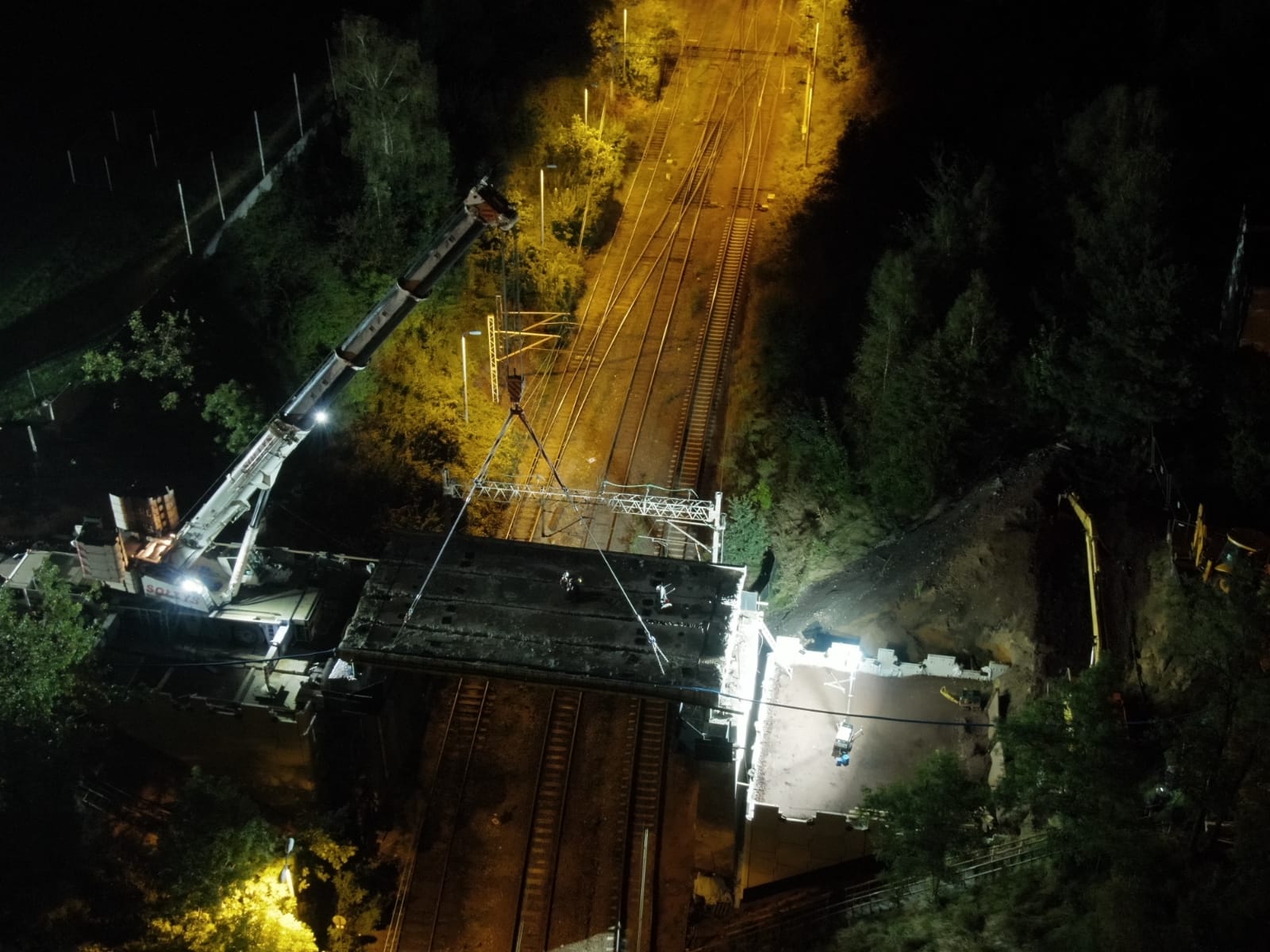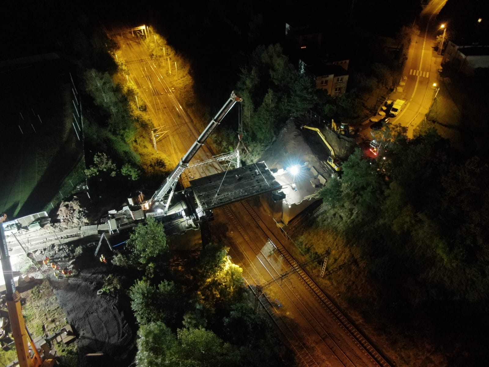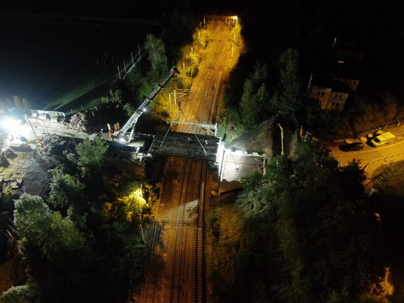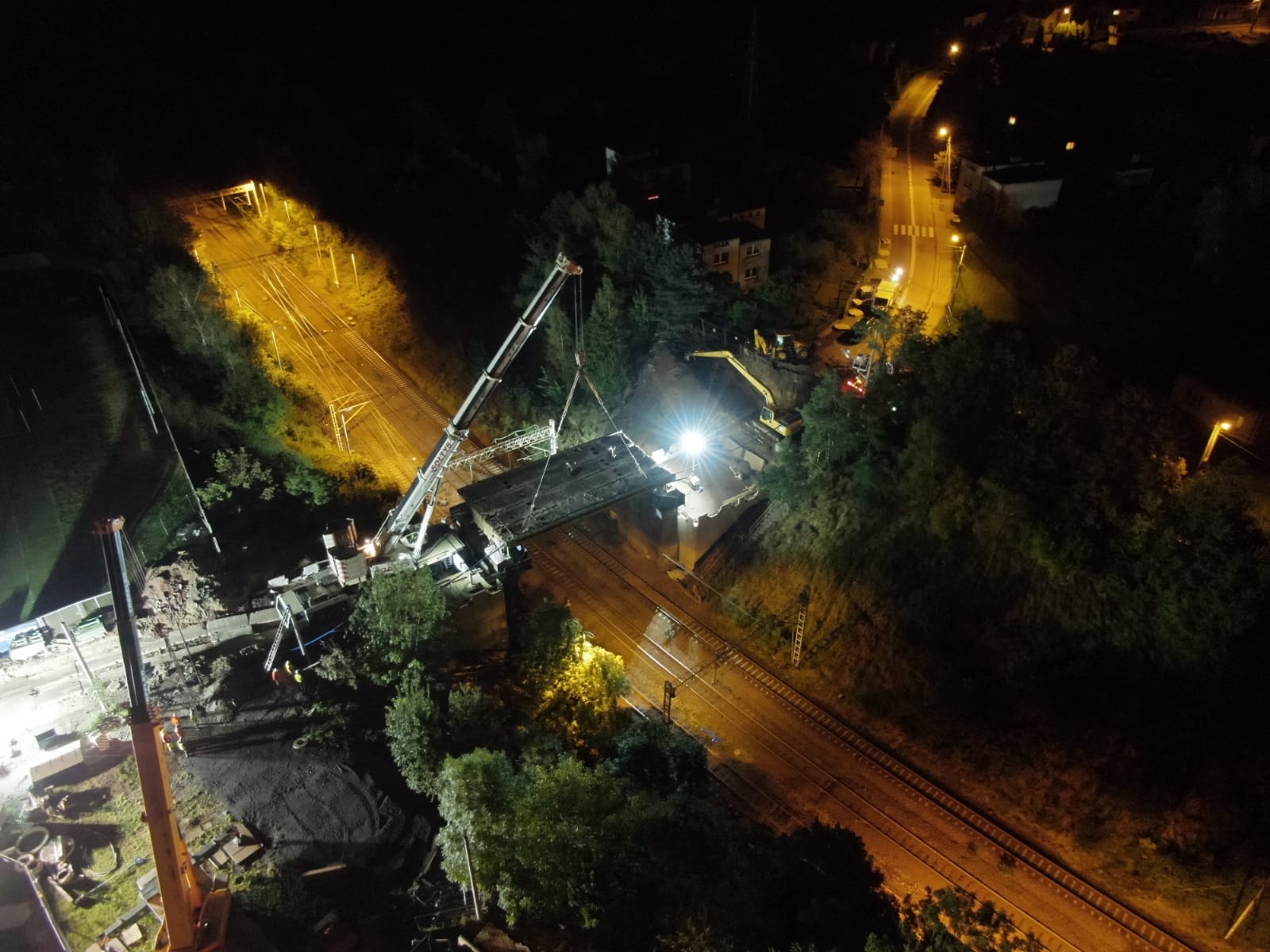 Prace wieczorne, prowadzone w nocy z 26 na 27 września 2020, na wiadukcie w Radlinie, przy ul. Mariackiej. Prace polegały na zdjęciu belek w środkowej części remontowanego wiaduktu.